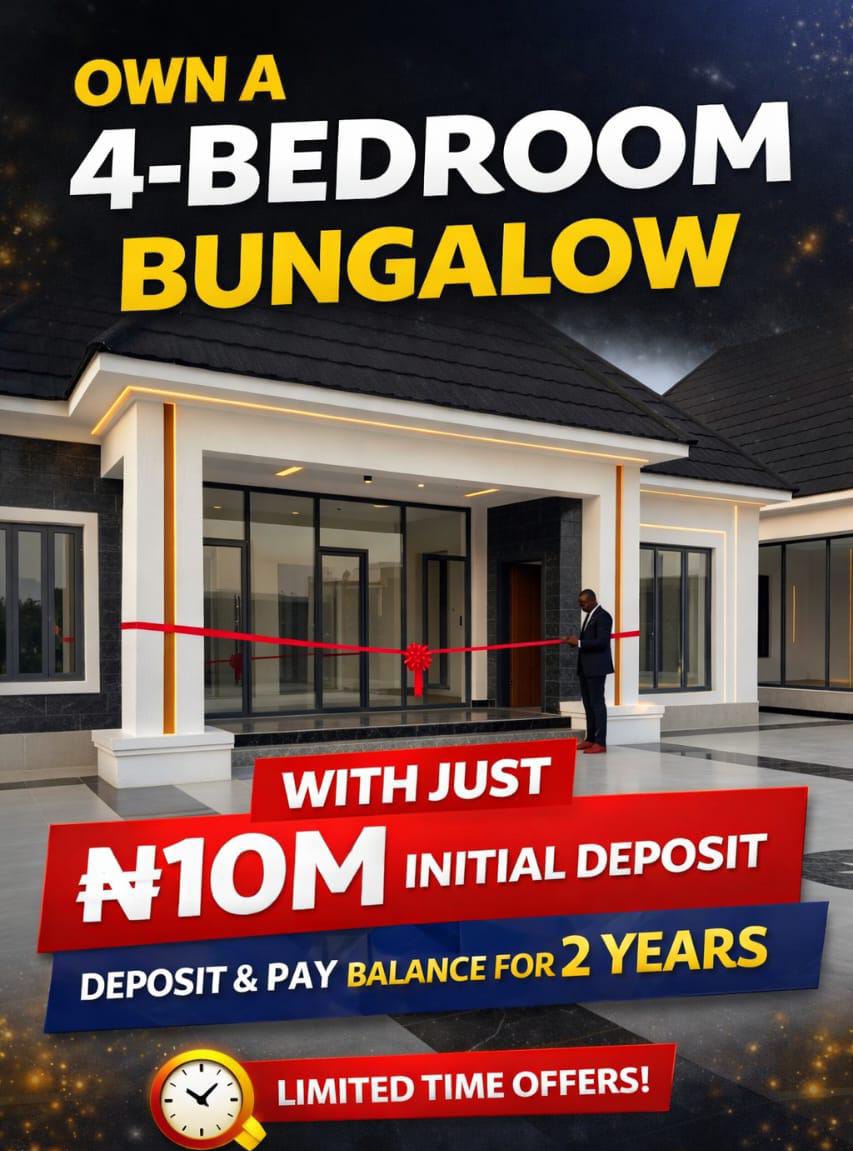 🏠 Executive 3-Bedroom Bungalow with a Room BQ Completed)