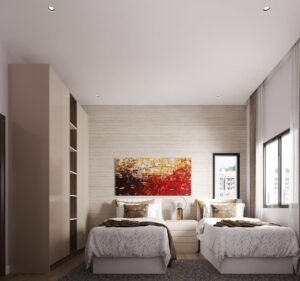 Our exquisitely crafted 2-bedroom apartments an array of premium amenities, including; ​Home automation for a life of ease, ​24/7 security and CCTV for your peace of mind, ​a fully fitted kitchen perfect for home chefs & ​Lush green spaces for relaxation.